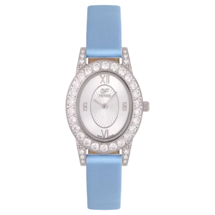 GF Ferre- Ladies- SS Case- White Dial- Light Blue Leather Strap- CZ