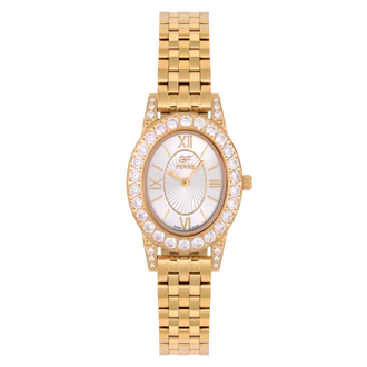 GF FERRE- Ladies- GP Case- White Dial- GP Band- cz