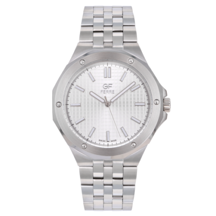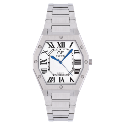 GF Ferre- Gents- SS Case- White Dial- SS Band