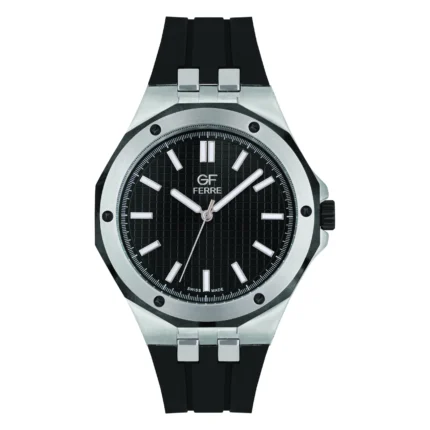 GF Ferre- Gents- SS Case- Black Dial- Black Rubber Strap