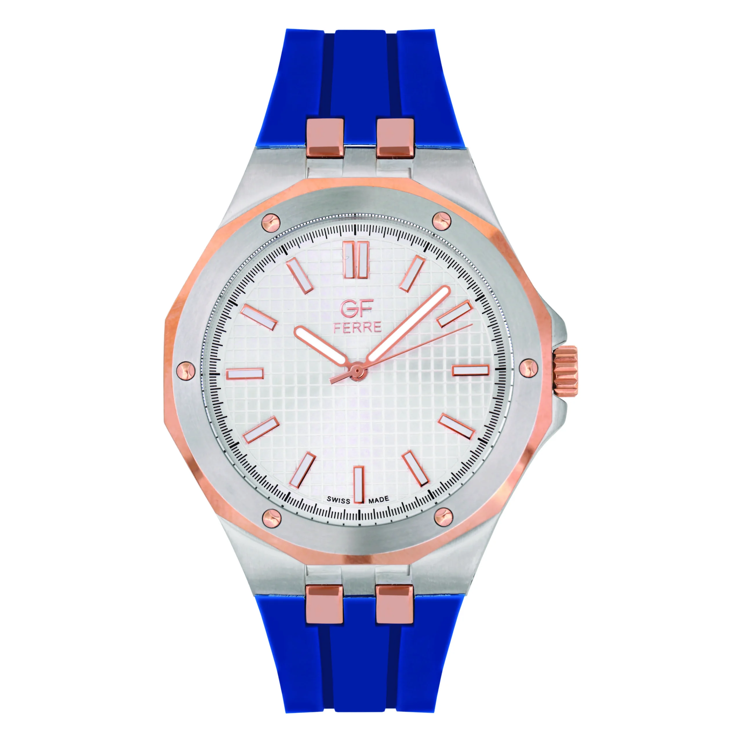 GF Ferre- Gents- TTRG Case- Silver Dial- Blue Rubber Strap