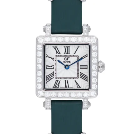 GF Ferre- Ladies- SS Case- White Dial- Green Leather Strap- CZ