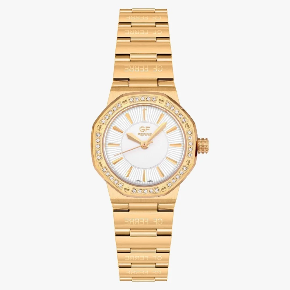 GF Ferre- Ladies- GP Case- White Dial- GP Band- CZ - Image 1